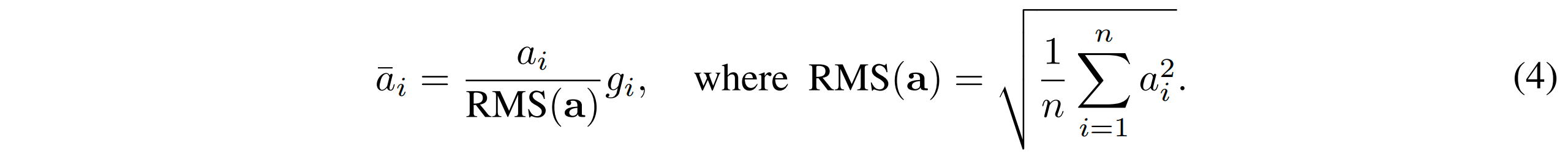 )。RMSNorm 定义为: \(\text{RMS}(x)=\sqrt{\frac{1}{D}\sum_{i=1}^{D} x_i^2+\epsilon} \quad,\quad y=\frac{x}{\text{RMS}(x)}\odot \text{weight}\)