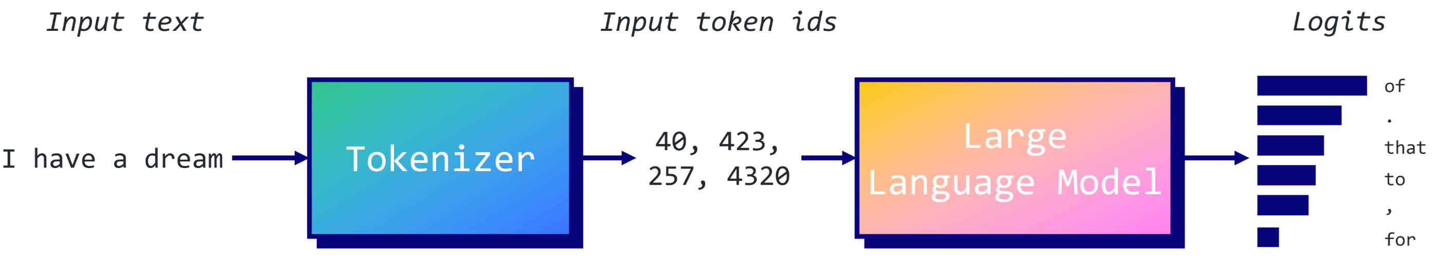 例如,输入文本是 “I have a dream”,模型不会直接输出完整下一句话,而是计算一个概率分布, 并且预测 P(next_token | "I have a dream")