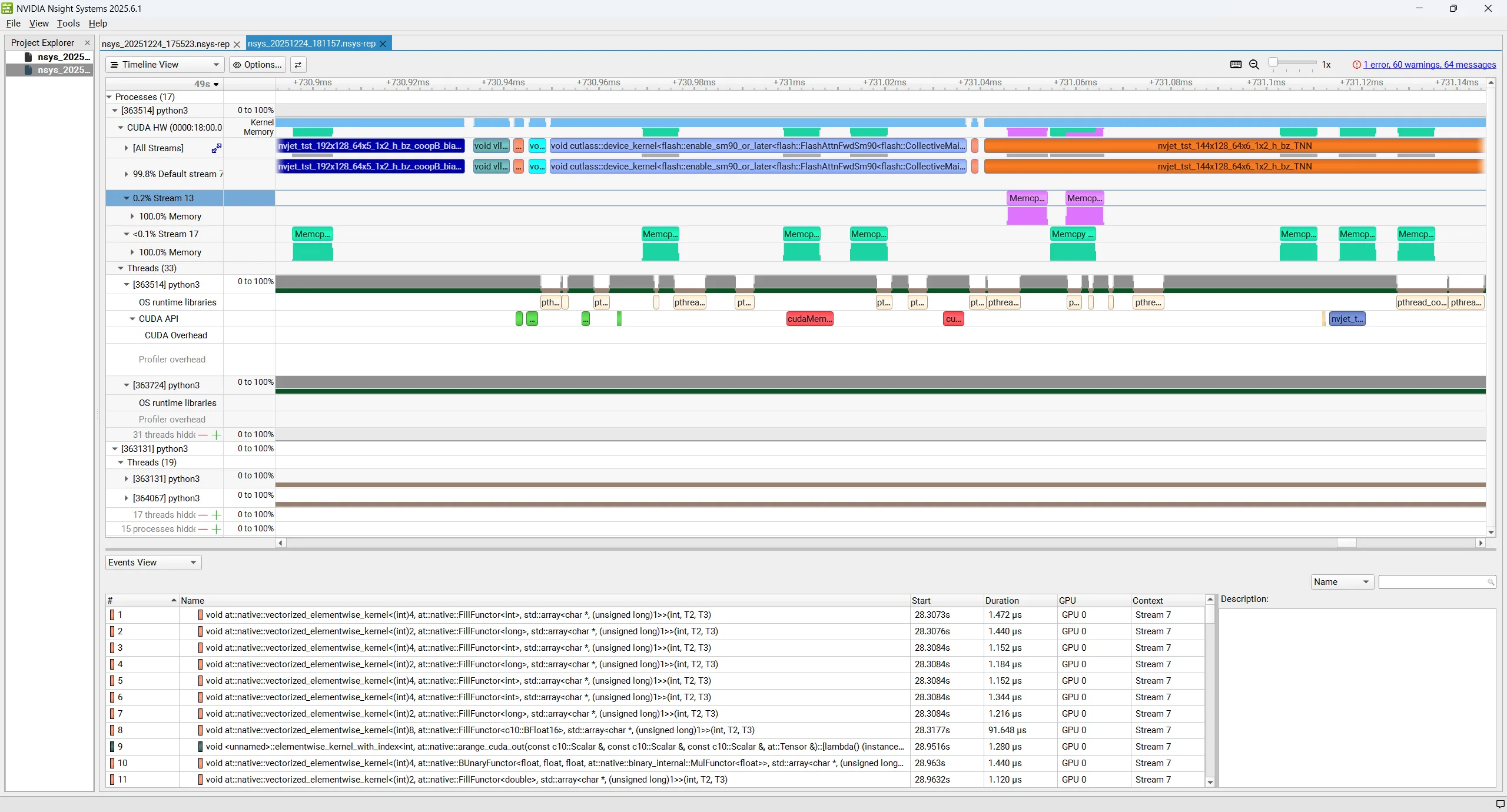 把 profiler 生成的 trace 文件上传到 https://ui.perfetto.dev/ 网站,可以更清楚的观察每个 stream/thread 的具体内容。